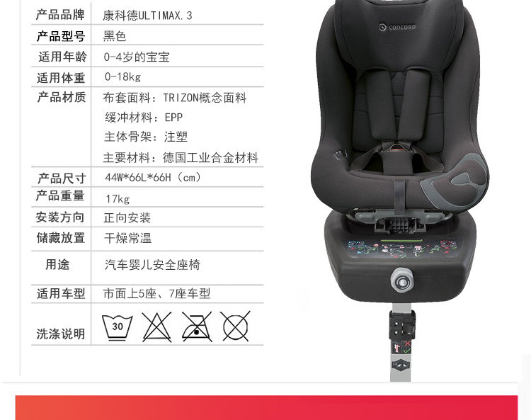 重庆保税直发 德国CONCORD康科德ULTIMAX.3儿童安全座椅 0-4岁 红色