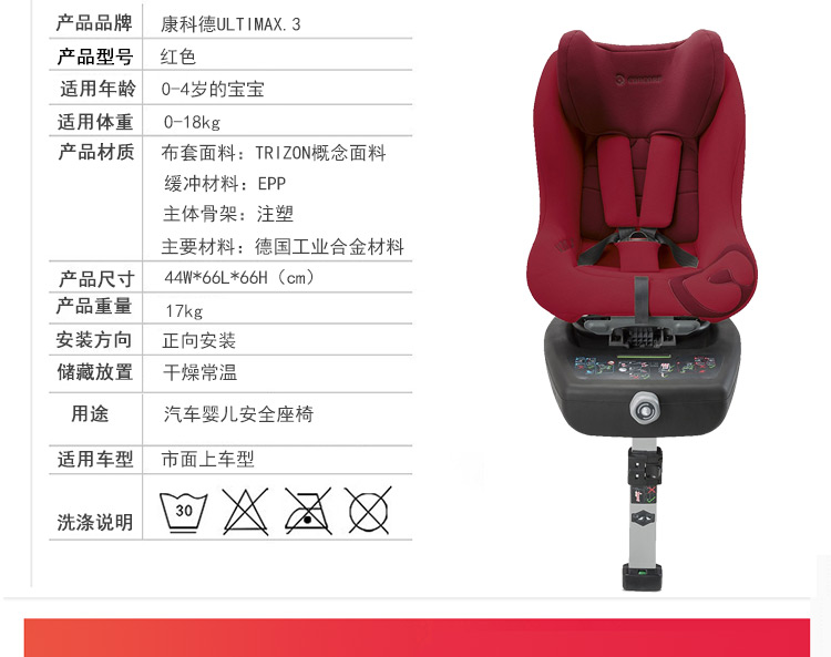 重庆保税直发 德国CONCORD康科德ULTIMAX.3儿童安全座椅 0-4岁 红色