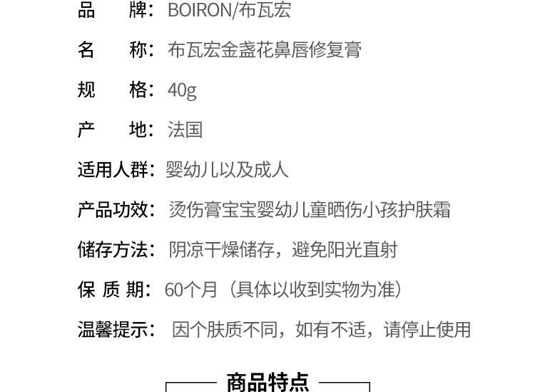 重庆保税直发 法国BOIRON宝弘金盏花鼻唇修复膏 40g