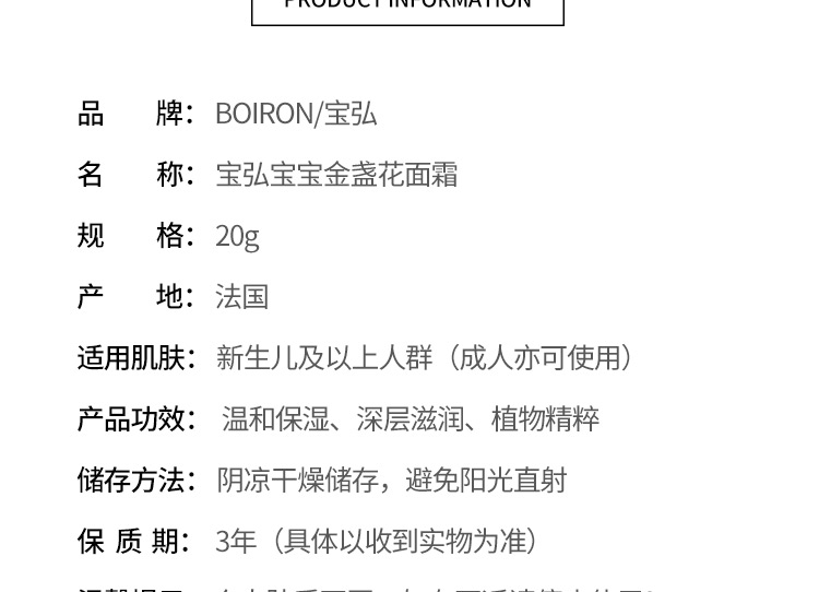 香港直邮 法国BOIRON宝弘宝宝金盏花面霜 20g【3盒组合】