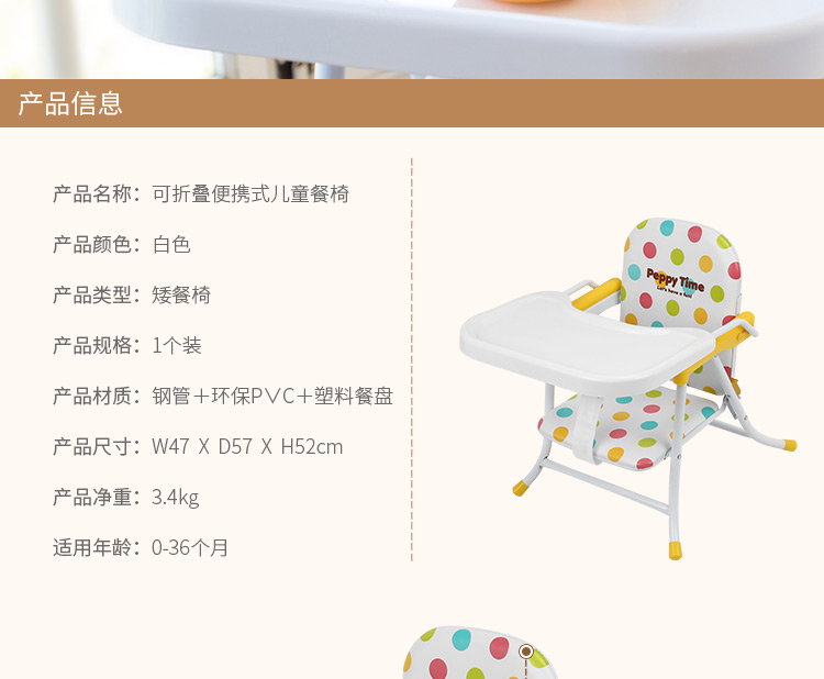 宁波保税直发 日本西松屋SmartAngel婴幼儿Peppy Time 矮脚餐椅(6-36个月) 1把