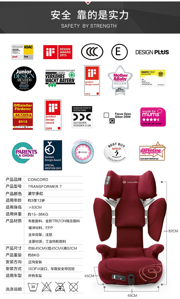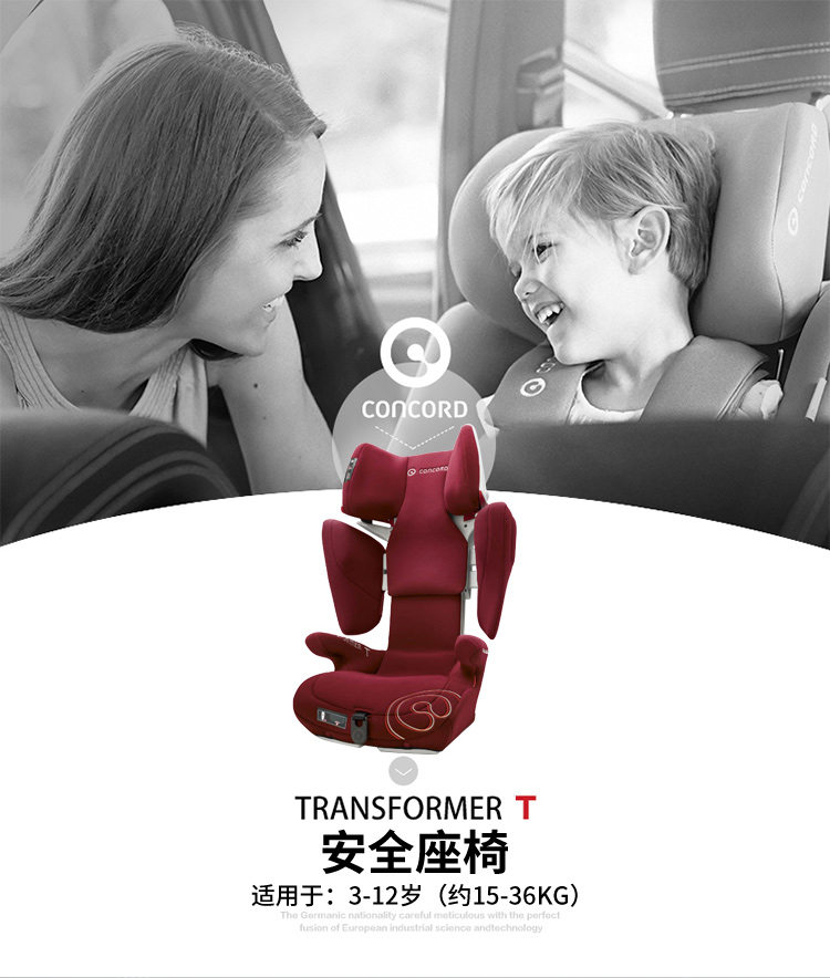 香港直邮 德国CONCORD康科德变形金刚T儿童安全座椅 3-12岁 波尔多红(外观破损)