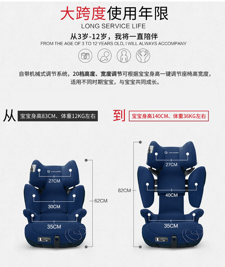 重庆保税直发 德国CONCORD康科德REVERSO.PLUS儿童安全座椅 0-4岁 海蓝色