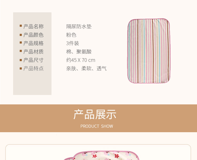 宁波保税直发 日本西松屋Elfindoll横条、圆点、花、车、动物图案 粉色3片组合换尿布