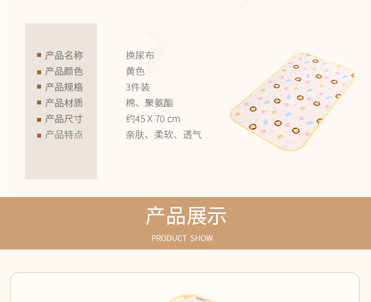 宁波保税直发 日本西松屋Elfindoll横条、圆点、花、车、动物图案 黄色3片组合换尿布