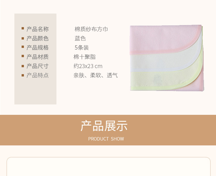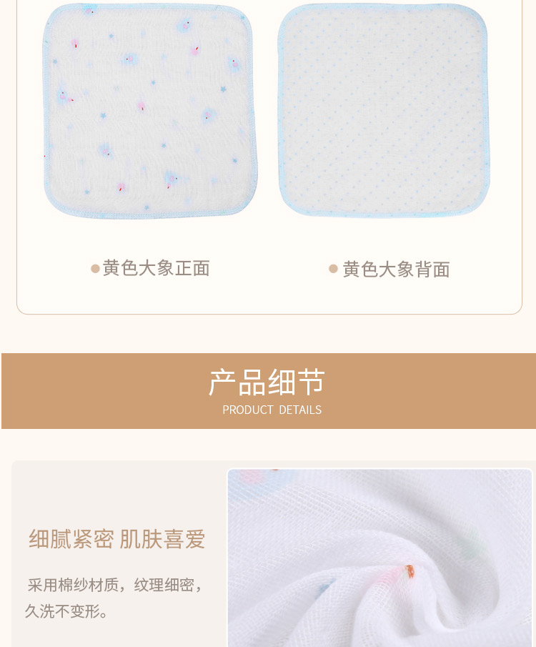 宁波保税直发 日本西松屋Elfindoll纱布手帕(大象、小鸡、兔子)蓝色 5条