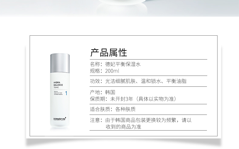 宁波保税直发 韩国DERMAFIRM+德妃EGF平衡保湿水 200ml
