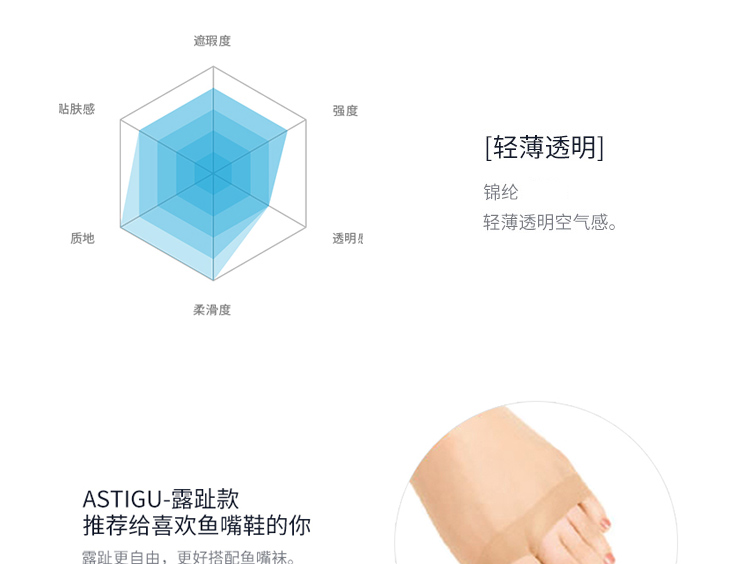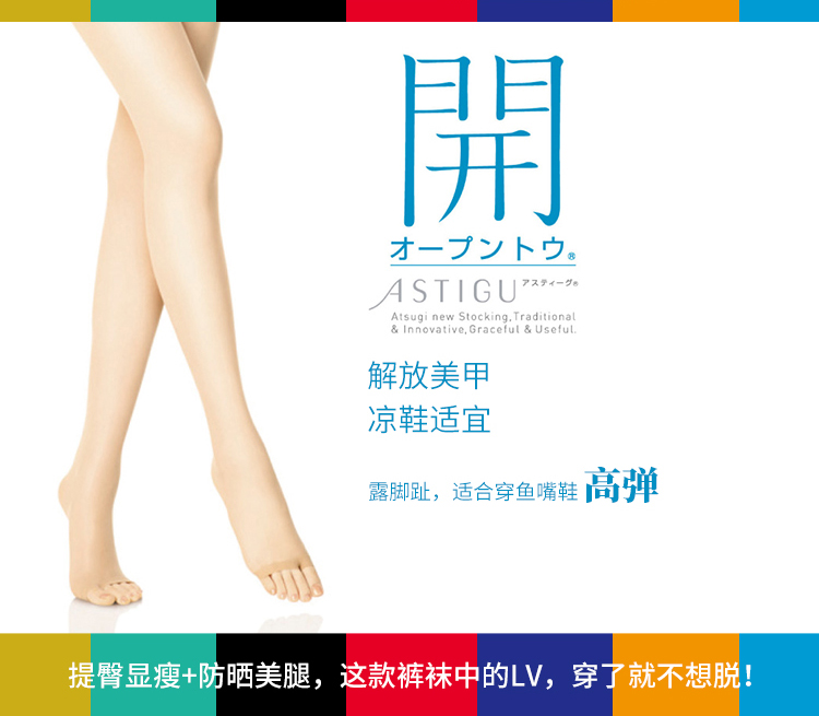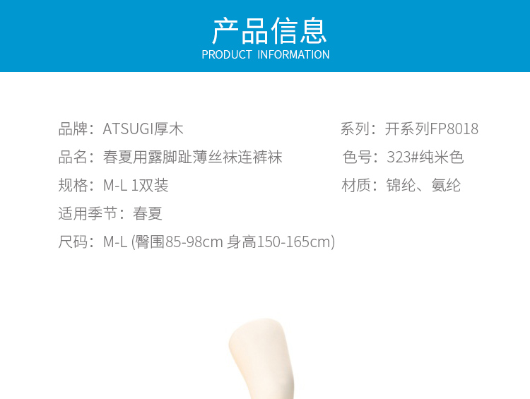重庆保税直发 日本厚木ASTIGU开系列FP8018春夏用露脚趾薄丝袜连裤袜 323#纯米色M-L 1双装