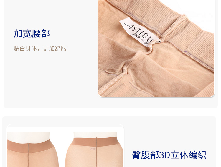 宁波保税直发 日本厚木ASTIGU压系列FP6892春夏用分段压力丝袜连裤袜 433#裸米色M-L 1双装