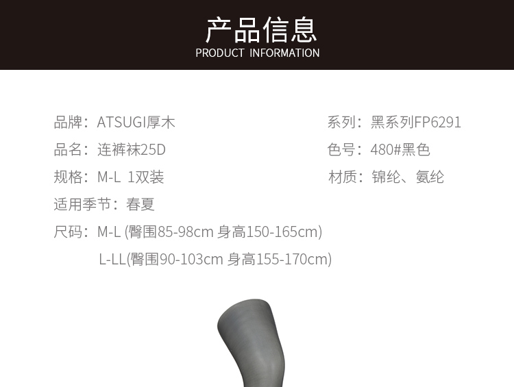 宁波保税直发 日本厚木ASTIGU黑系列FP6291连裤袜25D 480#黑色M-L 1双装