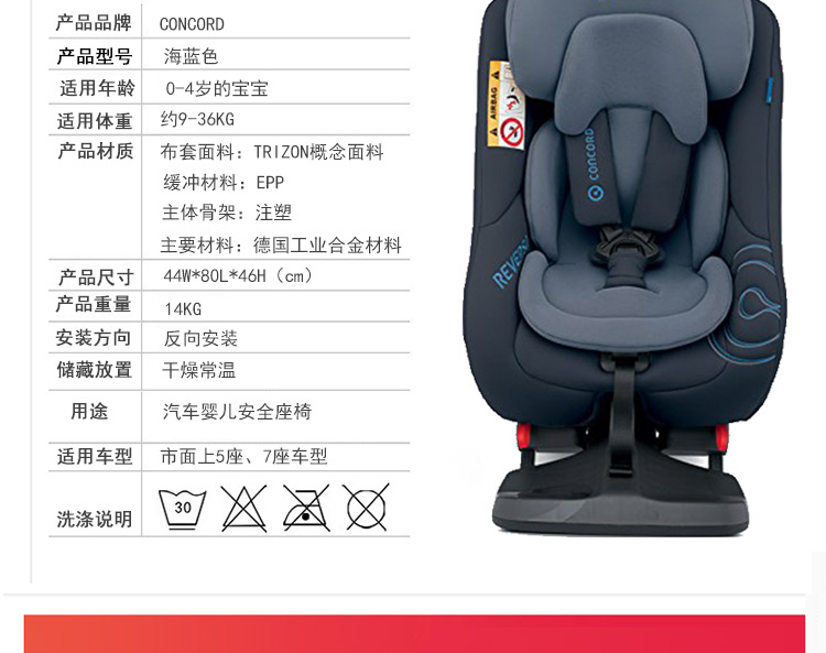 重庆保税直发 德国CONCORD康科德REVERSO.PLUS儿童安全座椅 0-4岁 海蓝色