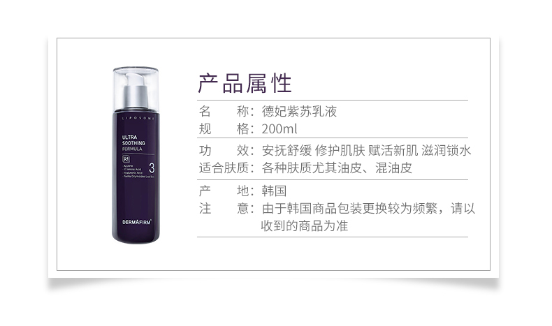 香港直邮 韩国DERMAFIRM+德妃紫苏乳液 200ml