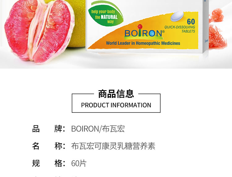 香港直邮 法国BOIRON宝弘可康灵乳糖营养素 60片【2支组合】