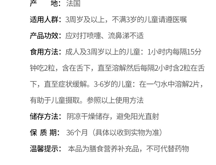 香港直邮 法国BOIRON宝弘欧斯诺可舒能 6支