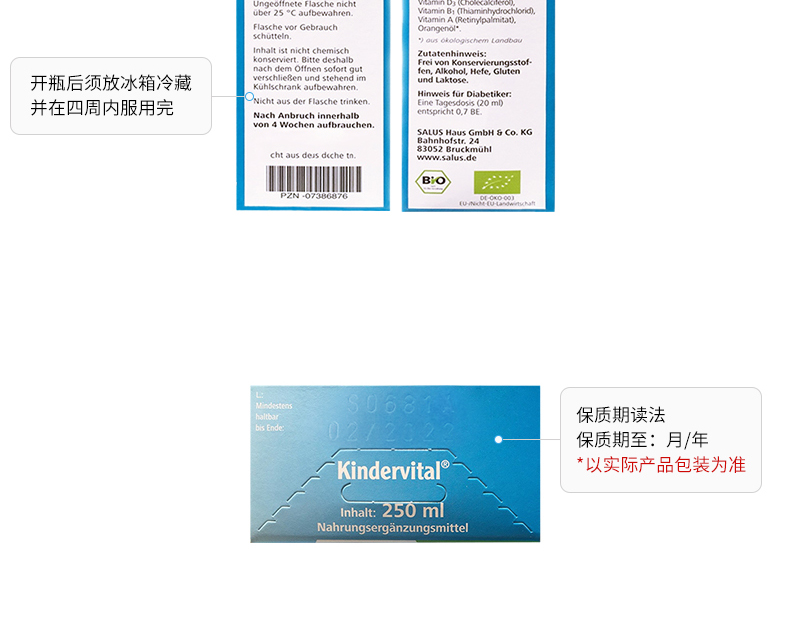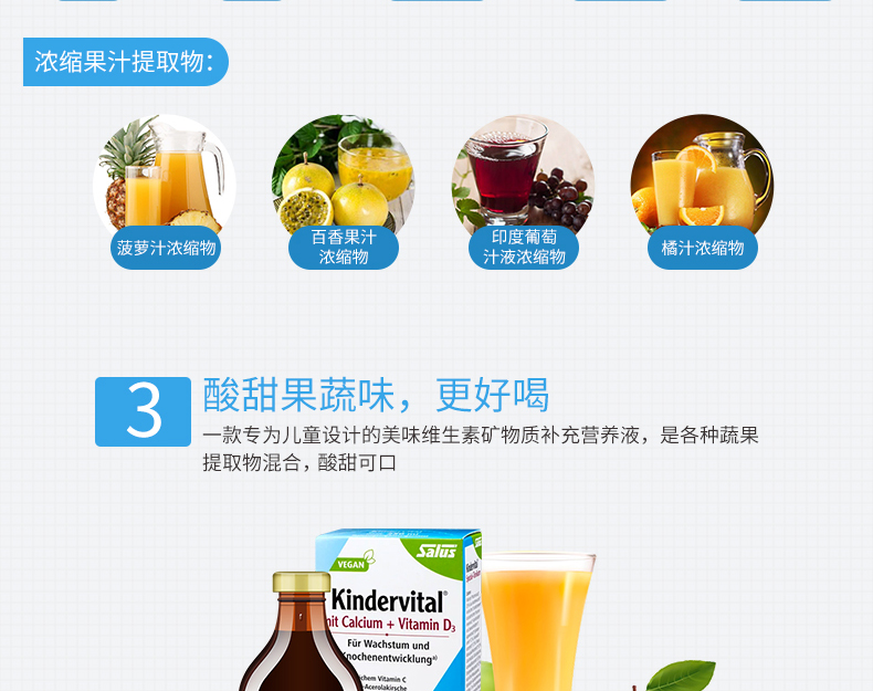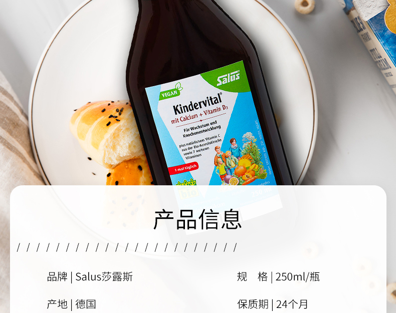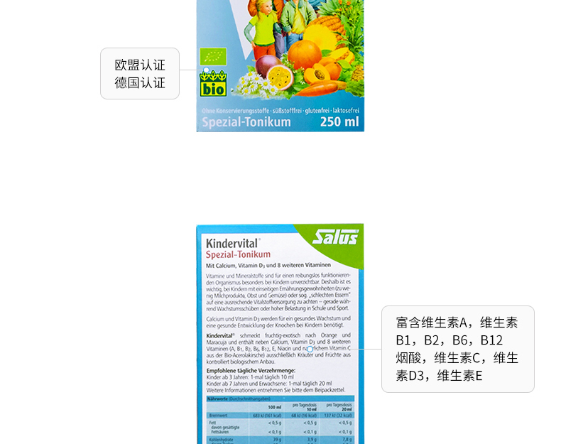 香港直邮 德国Salus莎露斯青少年儿童多种维生素补钙+维生素D3营养液 250ml