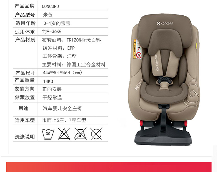重庆保税直发 德国CONCORD康科德REVERSO.PLUS儿童安全座椅 0-4岁 米色