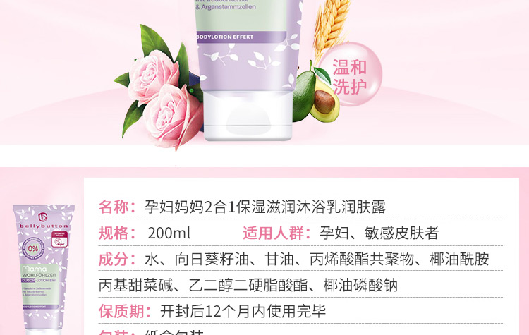 宁波保税直发 德国bellybutton孕妇妈妈2合1保湿滋润沐浴乳润肤露 200ml
